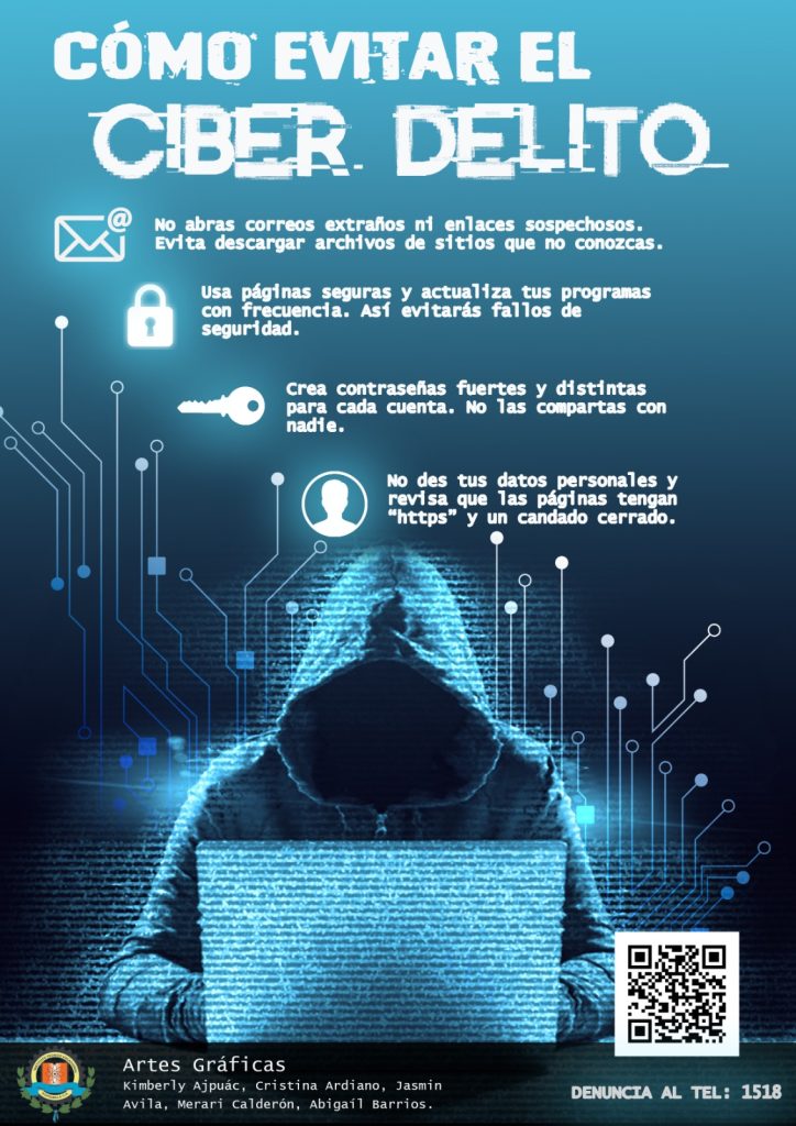 Para evitar el ciberdelito es importante proteger la información personal, usar contraseñas seguras, no compartir datos con desconocidos, mantener los dispositivos actualizados y desconfiar de mensajes o enlaces sospechosos.